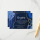 Completa tu suite de papelería de boda con esta elegante tarjeta de inclusión de recepción que presenta un diseño de mármol de ágata azul marino acentuado con detalles de plata lujosos. El fondo inspirado en geodas audaces crea una apariencia dramática y sofisticada, perfecta para bodas de otoño e invierno, celebraciones formales o eventos nocturnos glamorosos. Diseñada para proporcionar a los invitados información sobre la recepción, como cócteles, cena y baile, esta tarjeta de inclusión combina perfectamente con invitaciones a juego. La tipografía limpia y moderna mantiene tus detalles fáciles de leer mientras complementa la textura orgánica del ágata. Personaliza fácilmente todo el texto para adaptarlo a los detalles de tu boda y crea una experiencia fluida y elegante para tus invitados.