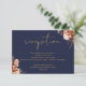 Esta elegante tarjeta de detalles de boda floral rústica puede ser personalizada con tu información en tipografía dorada chic sobre un fondo azul marino. Diseñada por Thisisnotme©