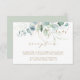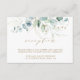 Esta tarjeta del recinto de la recepción de bodas incluye eucalipto de color agua pintado, hojas de purpurina verde botánico y dorado con escritura dorada.