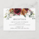 Diseñada para coordinar con nuestra colección de bodas Rustic Blooms, esta elegante tarjeta de recepción nupcial cuenta con hermosas acuarelas de color burdeos, naranja quemado, flores de color rubia y marfil. Personalízalo con tus detalles de forma fácil y rápida, simplemente pulsa el botón personalizar it para reorganizar y formatear el estilo y la ubicación del texto. c) El estudio Happy Cat Studio