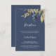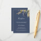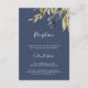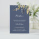 Esta tarjeta de inserción en recepción de bodas de la marina de vegetación de otoño es perfecta para una boda en otoño. El moderno diseño rústico incluye hojas azul marino, verde salvia y dorado con brotes de flores azules oscuras. Personalice esta tarjeta de gabinete de detalles con su información de recepción e incluya también la dirección de su sitio web boda.