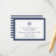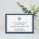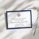 Esta sencilla y moda tarjeta de recepción de bodas cuenta con un doble borde de azul marino profundo con elegantes letras en bloques y guiones. Añade el horario de recepción, la ubicación y cualquier información adicional (como aparcamiento, aparcacoches o traslados) utilizando los campos proporcionados, coronados por un ilustracion de brújula náutica.