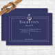 Sencilla y elegante, esta clásica tarjeta de recepción de bodas azul marino y blanco prepara el escenario para tu boda de temática náutica. Esta invitación a la boda es parte de las tarjetas Navy Nautical Wedding Invitation Suite creadas por Simply Farmhouse Press. Su color azul intenso y su temática náutica lo convierten en la invitación perfecta para los amantes de los barcos y del agua de todo tipo.