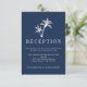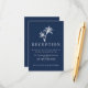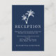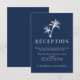 Esta tarjeta de recepción de boda azul marino tropical en la playa cuenta con un par de palmeras en la parte superior. Consulte la colección para el resto de la suite de invitados de boda coincidente y más productos que coincidan.