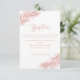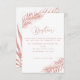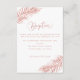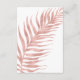 Sencilla y elegante, con un toque playero informal, esta tarjeta tropical de recepción de color rosa tiene una hoja de palmera en las esquinas opuestas y un fondo blanco limpio. En la parte trasera hay una hoja de palmera de oro rosa. Encuentre las invitaciones correspondientes y el resto de la suite boda de la colección. *Si quieres artículos adicionales con este diseño, u otra personalización de diseño, por favor contacta conmigo a través de Zazzle.