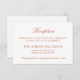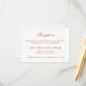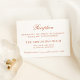 El diseño formal de la tarjeta de recepción de boda naranja terracota presenta una hermosa tipografía que combina un guión tradicional de caligrafía floreciente con letras clásicas en bloques sobre un fondo blanco limpio. El texto personalizado puede ser totalmente personalizado para la celebración de la boda que sigue a la ceremonia. Por favor, compre nuestra colección de Bodas Naranjas de Terracota Clásico Elegante para coordinar diseños.