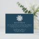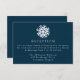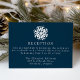 Completa tu suite boda con nuestra simple tarjeta de inscripción para la recepción de boda de la Marina de Snowflake. Con un audaz copo de nieve blanco en la parte superior y los detalles de la recepción nupcial con letras en serif blancas en un fondo marino, esta tarjeta es la incorporación perfecta para bodas de invierno, vacaciones y Navidades. El diseño es sencillo, moderno y elegante, y ofrece una forma elegante de compartir la información de la recepción con los clientes.
