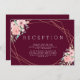 Tarjeta de Alojamiento Geométrico Marsala de Cobre Floral Wedding para Bodas. Asombrosas tarjetas de recepción de color maroon marsala con marcos geométricos de cobre y texto blanco adornadas con una impresión digitalmente ajustada de acuarela pintada a mano con motivos florales en tonos rosa, coral, verde y gris azulado. Visita nuestra tienda, Austen & Grace, para ver nuestros rangos de diseñadores en crecimiento, y por favor contáctanos si necesitas ayuda a través del botón de contacto o correo electrónico directamente en contact@austenandgrace.com