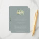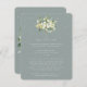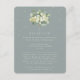 Una tarjeta azul-verde plana para recepciones nupciales que se celebran en un lugar diferente a la ceremonia del boda. La tarjeta incluye un elegante ramo/poste de bolas de nieve pintadas a mano y eucalipto en la parte delantera y una corona en la parte posterior de la tarjeta. Todo el texto es totalmente editable y los puntos dispersos en la parte delantera y trasera se pueden borrar antes de pedir si lo prefiere. Esta tarjeta está disponible con diseños botánicos alternativos, en formato paisajístico y en diferentes colores. Vea la colección en mi tienda para ver todas las opciones y los elementos de coordinación.