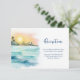 Disfrute de un paraíso tropical e informe a sus huéspedes de los detalles de la recepción de su boda con estas tarjetas de alojamiento inspiradas en la isla, con puesta de sol en la playa de color agua, palmeras y un tranquilo océano turquesa. El reverso presenta un elegante monograma de palmera con iniciales que se pueden personalizar. Arte por KL Stock