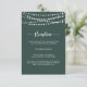 Esta tarjeta de recepción de bodas con luces de cuerda es perfecta para un boda rústico. El diseño presenta bonitas luces de cuerda pintadas a mano en un fondo verde.