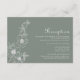 Esta elegante tarjeta de recepción floral de bodas es perfecta para una boda de invierno. El diseño presenta flores y flores de manzana acuarela de fondo verde.