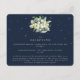 Una oscura tarjeta de la recepción de boda de la marina para las recepciones nupciales que se celebran en un lugar diferente a la ceremonia de los bodas. La tarjeta incluye un elegante ramo/poste de bolas de nieve pintadas a mano y eucalipto en la parte delantera y una corona en la parte posterior de la tarjeta. Todo el texto es totalmente editable y los puntos dispersos en la parte delantera y trasera se pueden borrar antes de pedir si lo prefiere. Esta tarjeta está disponible con diseños botánicos alternativos, en formato retrato y en diferentes colores. Vea la colección en mi tienda para ver todas las opciones y los elementos de coordinación.