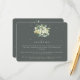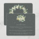 Una tarjeta de recepción de boda gris oscuro y plana con un elegante ramo/poste de nevadas pintadas a mano y eucalipto en la parte delantera y una corona en la parte trasera de la tarjeta. Todo el texto es totalmente editable y los puntos dispersos en la parte delantera y trasera se pueden borrar antes de pedir si lo prefiere. Esta tarjeta está disponible con diseños botánicos alternativos, en formato retrato y en diferentes colores. Vea la colección en mi tienda para ver todas las opciones y los elementos de coordinación.