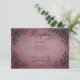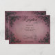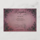 Celebre su amor en la grandiosidad del romance gótico con nuestra cautivadora tarjeta de recepción de boda. Abrace el atractivo oscuro y la elegancia atemporal con nuestros bordes de esquina de filigrana tridimensionales negros, que envuelven un texto negro en negrita contra un fondo burgundy victoriano vintage. Este diseño emana un encanto misterioso, perfecto para parejas que buscan infundir su día de boda con un aire de sofisticación dramática. Los intrincados detalles del marco de corazón de filigrana añaden profundidad y textura, creando un punto focal hipnótico que captura la esencia de la historia de amor única de ustedes. Como toque final de personalización, la parte posterior del diseño presenta el mismo marco de corazón de filigrana encantador adornado con las iniciales del primer nombre de la pareja, agregando un toque sutil pero significativo a esta obra maestra gótica. Creado por Simply