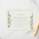 Una carta de bienvenida de boda crema, plana y de invierno con un borde de nevas pintadas a mano y eucalipto delante y una corona en la parte posterior de la tarjeta. Todo el texto es totalmente editable y los puntos dispersos en la parte delantera y trasera se pueden borrar antes de pedir si lo prefiere. Esta tarjeta está disponible con diseños botánicos alternativos, en formato retrato y en diferentes colores. Vea la colección en mi tienda para ver todas las opciones y los elementos de coordinación.