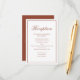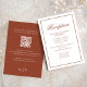 Elevar la papelería boda con esta elegante tarjeta de recepción, mostrando una rica temática de color burdeos y una elegante y sofisticada paleta. Diseñada con un guión elegante de caligrafía y una tipografía clásica formal, esta tarjeta exuda elegancia intemporal. Con una sección de detalles del boda de código QR, dirige a los huéspedes a su sitio web boda RSVP para obtener una respuesta moderna y perfecta. Comparte habitaciones sencillas y detalles de información esencial en la web sin esfuerzo, combinando belleza y funcionalidad.
