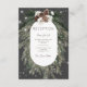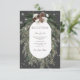 Este diseño presenta un ramo rústico de pino verde y piña sobre un fondo de carbón vegetal con flores blancas. Se acentúa con un resguardo blanco brillante para ilustrar la magia de las hermosas vacaciones de invierno. Ideal para Navidades o bodas de invierno. Esta tarjeta es parte de la suite Boda Boho Green Pine Winter Sparkle creada por Simply Farmhouse Press.