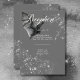 Entre en el encantador reino de nuestra tarjeta de recepción de bodas de Halloween, donde el amor se encuentra con el misterio glamoroso en una celebración hechizante. Con un fondo de crujiente gris carbón, este diseño le da un tono deslumbrante y oscuro a su día especial. Un murciélago de carbón vegetal con las alas esparcidas se sienta sobre los detalles de tu boda, rodeado por un grupo de brillantes diamantes sueltos, agregando brillo a la oscura belleza del diseño. Capturan el espíritu de Halloween y preparan el escenario para un boda tan bello como inolvidable. Elija nuestra suite de invitados para bodas de Halloween para emprender un viaje a la sombra y crear recuerdos que durarán toda la vida. Creado por Simply Farmhouse Press.