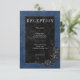 Transportar a sus huéspedes a un mundo de oscuridad y elegancia encantadora con nuestra vintage tarjeta de recepción gótica de bodas. El fondo azul marino oscuro, profundo y envejecido, prepara el terreno para un sorprendente contraste, a medida que el texto en negrita sale de intrincados cuadros de texto en negro. En el pináculo de esta invitación, un borde gótico tridimensional adornado con un cuervo negro real captura la esencia del misterio y el romance. La parte trasera está adornada con dos viñas entrelazadas de rosas negros formando sutilmente un corazón alrededor de dos cuervos abrazadores, lo que añade un toque de encanto dramático. Desate la magia y marca el tono para un día de boda inolvidable. Esta tarjeta es parte de la suite Boda azul gótica Black Raven & Black Rosas creada por Simply Farmhouse Press.
