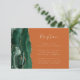 El borde izquierdo de esta elegante y moderna tarjeta del recinto de la recepción de bodas cuenta con una barra de color verde esmeralda recortada con un falso purpurina de oro. El título aparece en el guión de escritura a mano, con el texto de personalizable debajo en una letra de placa de cobre de color dorado sobre un naranja quemado o fondo rojizo. El reverso presenta un diseño de ágata dorado y verde esmeralda a juego.