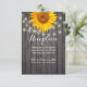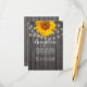 Tarjetas de recepción de madera de granero con girasoles y luces de cadena.