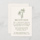 Añade un toque de elegancia natural a tu suite boda con esta tarjeta de recepción, que muestra palmeras verdes dibujadas a mano sobre un suave fondo crema. Ideal para bodas de jardín, tropicales o de destino, este elegante diseño ofrece espacio para los detalles de la recepción, como el lugar y el momento, asegurando a los huéspedes toda la información necesaria. Un bonito y atento complemento a tu invitación.