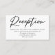 Moda sencilla y elegante, nuestra minimalista colección de bodas cuenta con una tipografía cursiva elegante para su evento invernal. Dé a sus invitados detalles del evento con una tarjeta de recepción de boda atrevida con un sencillo guión negro en blanco.