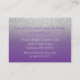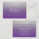Tarjeta de gabinete - crea la suya propia. Con un elegante purpurina plateado falso y un diseño morado listo para añadir tu texto. Hay productos que coinciden. 😊 Esta tarjeta de inserción puede cambiarse a cualquier tipo de información que necesite y enviarse con su invitación. (Direcciones, detalles, desear bien, fondo de luna de miel, registro de regalos, sorteo de un juego, un sitio web de una ducha de bebé en línea, una sorpresa de cumpleaños, información de aniversario, lugar de recepción, rsvp en línea, sitio web de bodas, información general, traer un libro, rifa de pañales, información del club de libros, etc... la lista es interminable. se puede usar ambos lados si es necesario) ✔ Nota: no todas las áreas de plantilla necesitan cambios. 📌 Si necesita más personalización, haga clic en el botón "Haga clic para más Personalizares" o "Personalizar o Editar diseño" y utilice nuestra herramienta de diseño para cambiar el tamaño, rotar, cambiar el color del texto, agregar texto y mucho más. ⭐ Este producto es un Personalizable del 100%. Los gráficos y / o el texto pueden ser agregados, borrados, movidos, cambiados de tamaño, rotados, etc... ⭐ el 99% de mis diseños en mi tienda se hacen en capas. Esto facilita el redimensionar y mover los gráficos y el texto para que encajen perfectamente en cada producto. 📌 (Asegúrese de cambiar el tamaño o mover los gráficos si fuera necesario antes de realizar el pedido) También puede "TRANSFER DESIGN" en otros productos de Zazzle y ajustar el diseño para que se ajuste a la mayoría de los artículos de Zazzle. (el botón está en el lado derecho de la página) Este diseño está hecho con vectores de alta resolución y/o gráficos digitales para una impresión profesional. NOTA 📌: (ESTA ES UNA IMPRESIÓN. Todos los diseños de los productos de Zazzle son "impresiones" a menos que se indique lo contrario en "Acerca de este producto" en el lado izquierdo de esta página) El diseño se imprimirá "EXACTAMENTE" como lo ve en la pantalla y en el producto... así que asegúrese de que cuando realice sus cambios en el redimensionamiento de cualquiera de los gráficos o textos que encaja correctamente en las áreas y que su ortografía y redacción es como le gusta que sea en tamaño, color y tipo de letra. Si tiene alguna pregunta sobre el "DISEÑO ÚNICAMENTE" o necesita ayuda, por favor contacte conmigo en ✉ siggyscott@comcast.net o visite el enlace de mi tienda: https://www.zazzle.com/store/designsbydonnasiggy (Copiar y Pegar) Estaré encantado de ayudar. 📌 TODAS LAS DEMÁS PREGUNTAS (envío, reembolso, impresión, el producto, etc...) por favor contacte con Zazzle o el Maker ⭐ DIRECTAMENTE ⭐. Gracias por el apoyo y por parar por mi tienda - DesignsbyDonnaSiggy. © Donna Siegrist ⭐ ⭐ ⭐ ZAZZLE promete 100% de satisfacción. Si no te gusta absolutamente, ¡Zazzle se lo llevará de vuelta! ⭐ ⭐ ⭐ 1-888-8ZAZZLE (1-888-892-9953) Horas de teléfono: Lunes - Viajero: 9AM - 5PM PT (12PM - 8PM ET)