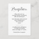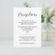 Tarjeta vertical del recinto de la recepción de bodas en blanco y negro con una redacción formal que informa a los huéspedes sobre el fiesta de cócteles y el momento y la ubicación de la cena. La parte posterior puede ser personalizada con su sitio web o los detalles de alojamiento según sea necesario.