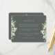 Una tarjeta de recepción de boda gris oscuro y plana con un borde de nevadas pintadas a mano y eucalipto en la parte delantera y una corona en la parte posterior de la tarjeta. Todo el texto es totalmente editable y los puntos dispersos en la parte delantera y trasera se pueden borrar antes de pedir si lo prefiere. Esta tarjeta está disponible con diseños botánicos alternativos, en formato retrato y en diferentes colores. Vea la colección en mi tienda para ver todas las opciones y los elementos de coordinación.
