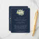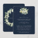 Una tarjeta de sobre cerrado de color azul marino oscuro para recepciones de boda que se celebran en un lugar diferente al de la ceremonia de boda. La tarjeta presenta un elegante ramo/posy de bayas de nieve y eucalipto pintados a mano en la parte frontal y una corona en el reverso de la tarjeta. Todo el texto es totalmente editable y los puntos dispersos en la parte frontal y posterior se pueden eliminar antes de realizar el pedido si lo prefiere. Esta tarjeta está disponible con diseños botánicos alternativos, en formato horizontal y en diferentes colores. Por favor, consulte la Colección en mi tienda para ver todas las opciones y artículos coordinados.