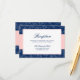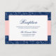Tarjeta de recepción de boda elegante rosa rubor y azul marino.