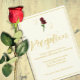 Elegancia intemporal: boda tradicional de rosas rojas minimalistas con tipografía de escritura dorada y fondo de marfil.