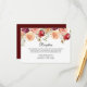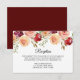 Tarjeta de recepción de boda floral burgundy elegante con un hermoso ramo de flores de peonía de acuarela sobre la tipografía chic. Una elección audaz de invitación que se destacará entre todos los demás estilos de diseño de boda de tarde este otoño.