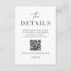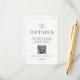 Utilice nuestras modernas tarjetas de detalles para que sus invitados escaneen el código QR y vean los detalles de su boda y la dirección de su sitio web. Este artículo es parte de nuestra suite de invitaciones de boda Colette C300, visite nuestra tienda para ver la colección de artículos coordinados.