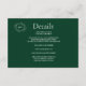 Recepción Detalles de la tarjeta de envolvente verde esmeral
