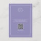 Detalles de la tarjeta de escudo del monograma de QR Code Lavender para el Boda y cualquier detalle del evento que desee enviar, código qr en la parte posterior de la tarjeta de su sitio web