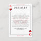 El rey y la reina de los corazones jugando a la carta de detalles del boda de cartas. Personalízalo con los detalles de tu evento. Ideal para una celebración de Las Vegas / con temas de póquer.