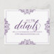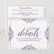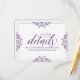 Los elegantes detalles de la boda insertan las coordenadas de la tarjeta perfectamente con nuestra suite de invitaciones de Nadine. El color de diseño se establece en ciruela / púrpura oscuro, pero puede cambiar el color del diseño cambiando el color de fondo. **CÓMO CAMBIAR EL COLOR DE DISEÑO** 1) Haga clic en el botón "Personalizar". 2) Haga clic en el enlace "ClICK TO PERSONALIZAR FURTHER" en la parte inferior. Entonces tendrá la opción de cambiar su "COLOR DE FONDO" a su color boda. No olvides cambiar el color del texto para que coincida con tu diseño.