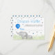 La Adorable tarjeta de envoltorio de canto de pañales para bebés con ducha para bebés incluye elefantes acuarelas que sostienen un globo azul, hojas verdes con puntos azules y grises. Esta tarjeta pide a los invitados que traigan un paquete de pañales para tener la oportunidad de ganar un premio.