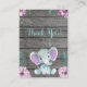 Biblioteca para Bebé, Reserve la tarjeta para una ducha Chica elefante morado, verde azulado, turquesa y cacahuete gris.