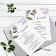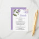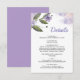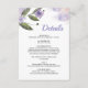 Una elegante tarjeta con detalles de boda, con un suave diseño floral violeta que añade un toque dulce y romántico.