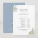 Mantén a tus huéspedes informados con esta elegante tarjeta de itinerario floral azul polvoriento, con un diseño limpio y minimalista que es perfecto para esbozar los detalles de tu día de boda o de tus eventos de fin de semana. Los suaves acentos florales le dan un toque de sofisticación al diseño, lo que lo convierte en un hermoso añadido a su papelería boda. Personalizar con su programa, ubicación de eventos y otros detalles importantes para garantizar una celebración perfecta.