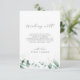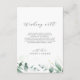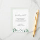 Este elegante boda de verdor que desea una buena carta es perfecto para un boda sencillo. El moderno y elegante diseño presenta un diseño botánico natural de eucaliptos, hojas y plantas con un sutil acento acuático verde de menta. Personalice esta tarjeta de invitación con sus nombres y un poema corto que desee bien.