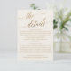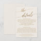 Esta elegante tarjeta de detalles de marfil de caligrafía dorada es perfecta para una boda en otoño. El diseño neutro cuenta con una tarjeta minimalista decorada con una romántica tipografía de Relieve metalizado de imitación de oro. Nota: Este diseño no tiene Relieve metalizado oro real. Es un gráfico de alta calidad hecho para parecer un Relieve metalizado dorado.