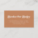 Libros para tarjeta de bebé. Un tema de moda retro: adopta este diseño tipográfico vintage y elegante para tu papelería Baby Shower, con un tema de color azucarado marrón. Fácil de mezclar y emparejar con nuestra papelería similar disponible en naranja quemado, terracota y rosa melocotón. Personalizable completamente los colores y fondos de texto.