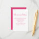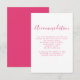 La tarjeta de alojamiento para bodas incluye un elegante tipo de letra con un diseño tipográfico moderno y limpio. El color rosa caliente se transporta en la parte posterior de la tarjeta. Esta pieza está lista para que usted pueda personalizar con los detalles de su día especial. Como parte de una colección en constante crecimiento, por favor visite la Colección de Bodas de acuarela floral elegante rosa para ver elementos complementarios.