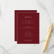 Esta sofisticada tarjeta de gabinete boda es perfecta para compartir detalles esenciales con sus huéspedes. El color marrón profundo aporta un toque de elegancia, mientras que la disposición clara y concisa garantiza que toda la información sea fácilmente legible y accesible. Incluya detalles sobre el alojamiento, el transporte, el calendario de eventos y el código de vestimenta. Esta tarjeta complementará perfectamente las invitaciones de boda y ayudará a que su día especial sea aún más organizado y memorable. La estética, sencilla y moderna, hace que esta tarjeta sea adecuada para cualquier estilo boda.