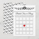 Elegante tarjeta de juego de bingo boda floral con flores negras y blancas. Muestra una flor pequeña con hojas en negro y un oído rojo. En la parte trasera se ha optado por un patrón blanco y negro con flores y hojas pequeñas.